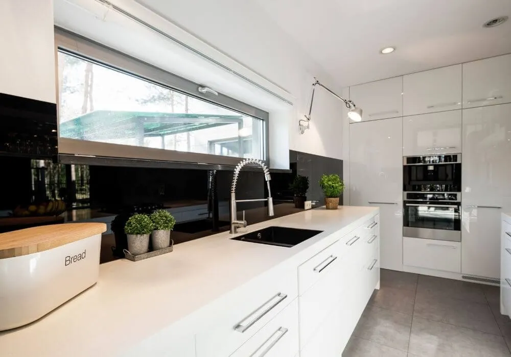 Jaką podłogę wybrać do białej kuchni z czarnym blatem?